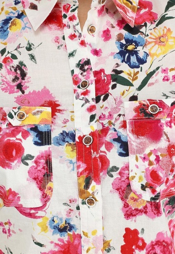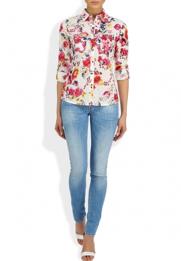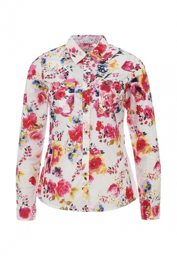 Блуза Sela выполнена из хлопкового материала. Детали: приталенный крой, отложной воротник, длинный рукав, манжеты и застежка на пуговицах, два нагрудных кармана, цветочный принт.