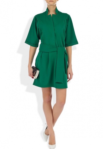 Платье Love & Light решено в зеленом цвете. Модель выполнена из плотного эластичного материала. Детали: сложный крой лифа, потайная застежка на пуговицах, два кармана в боковых швах. К модели прилагается пояс.
